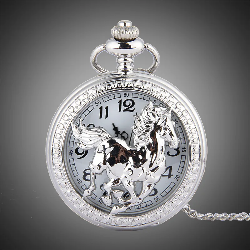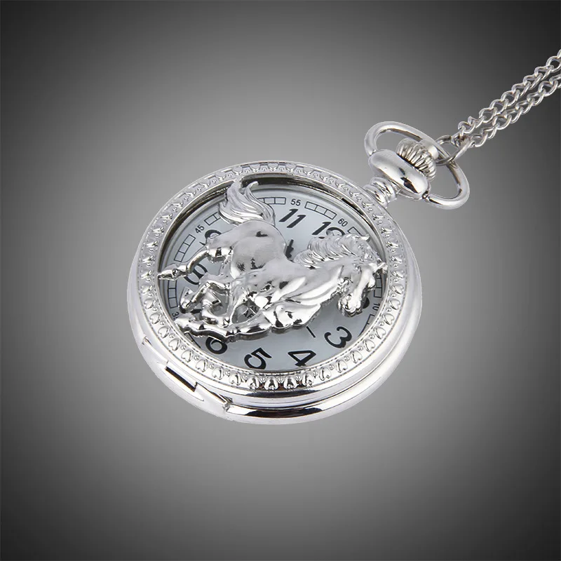 Animal Horse Pocket Watch Mens Male Silver Hollow Elegant Pocketwatch With Chain Masculino Relogio Vintage Dad's Gift Clock