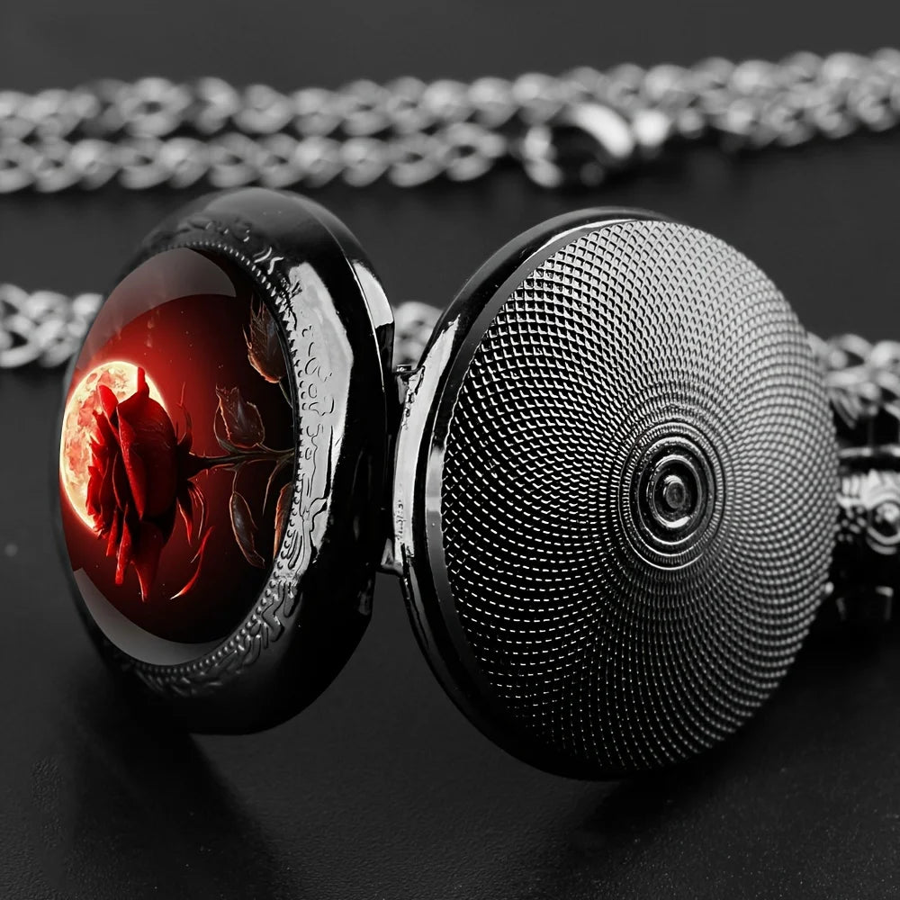 Exquisite Special Pocket Watch Romantic Rose Flower Elegant Black Clock With Necklace Lover's Best Gift Cool Fashion Relojes