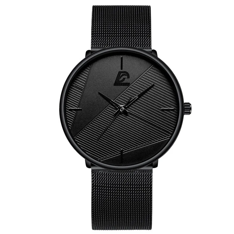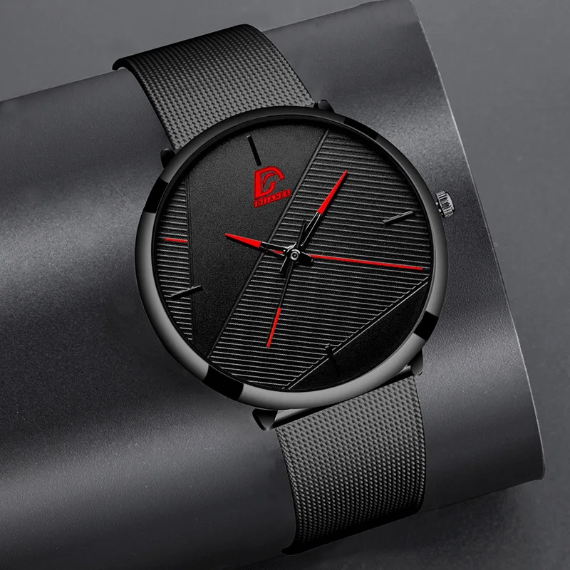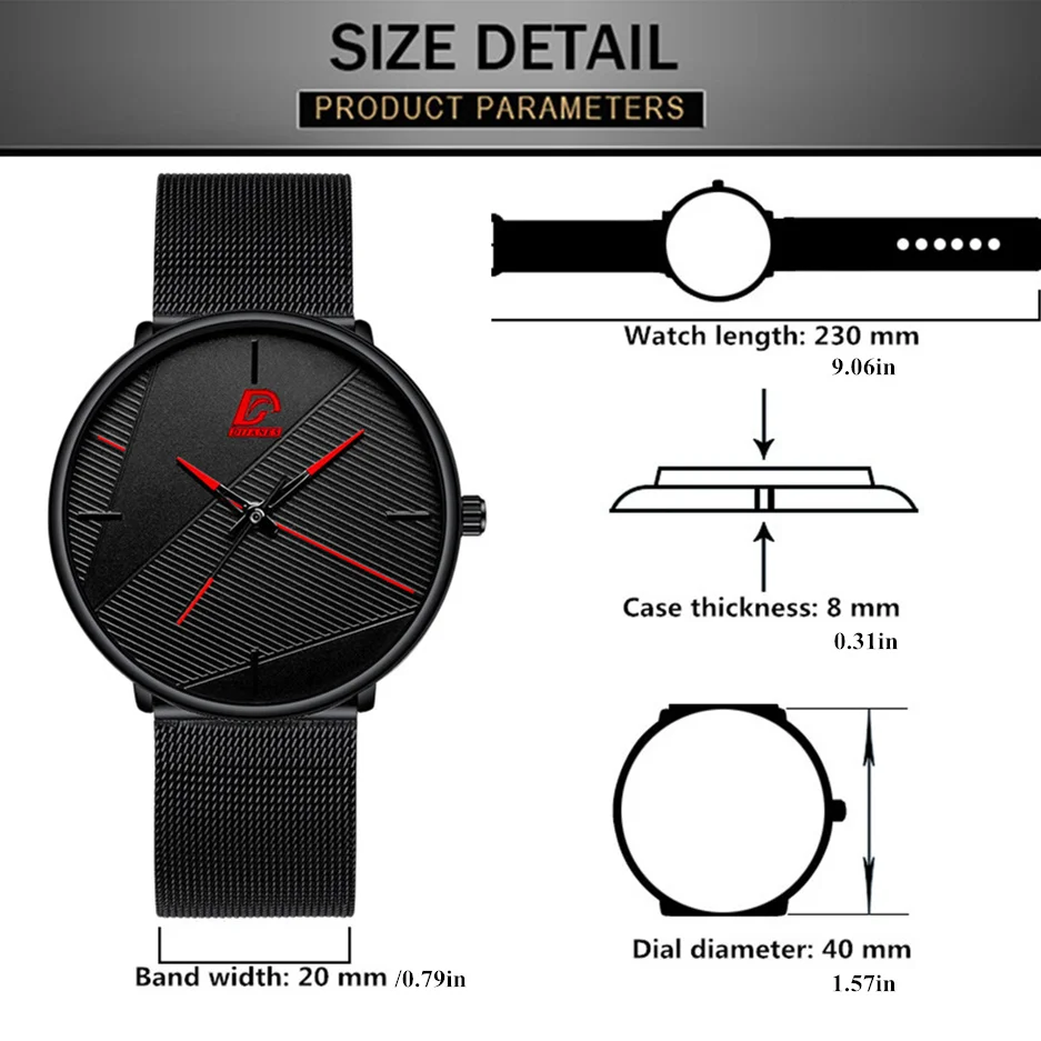 Fashion Trendy Watch Men Business Measuring Cool Black Stainless Steel Mesh Band Quartz Wristwatch Male Clock Relogio Masculino