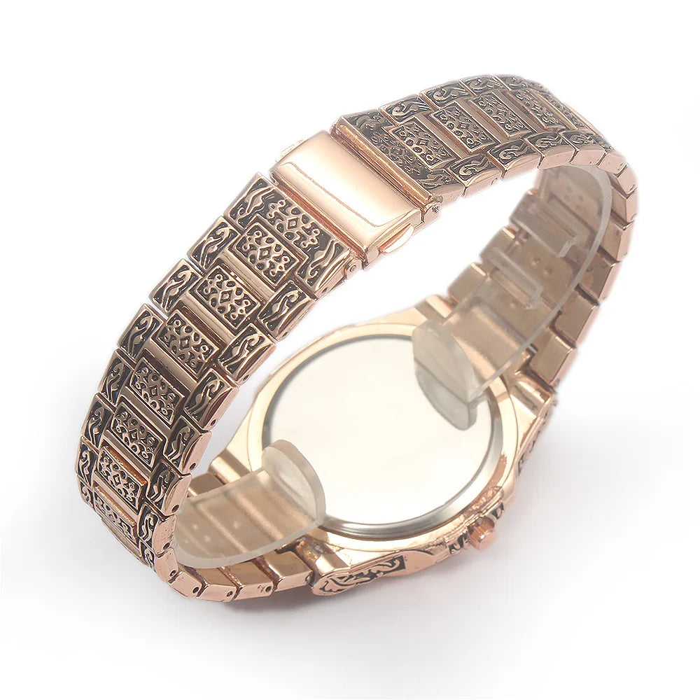relogio masculino Men's retro embossed steel band watch calendar fashion business watch Men Male Clock Gift relojes para hombre