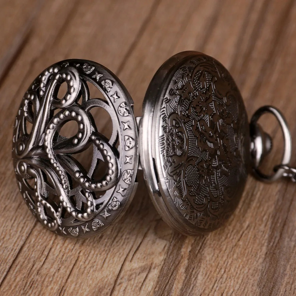 Retro Black & Bronze Octopus Quartz Pocket Watch With Necklace Chain Gift for Male Women Chronograph Hombre Relojes