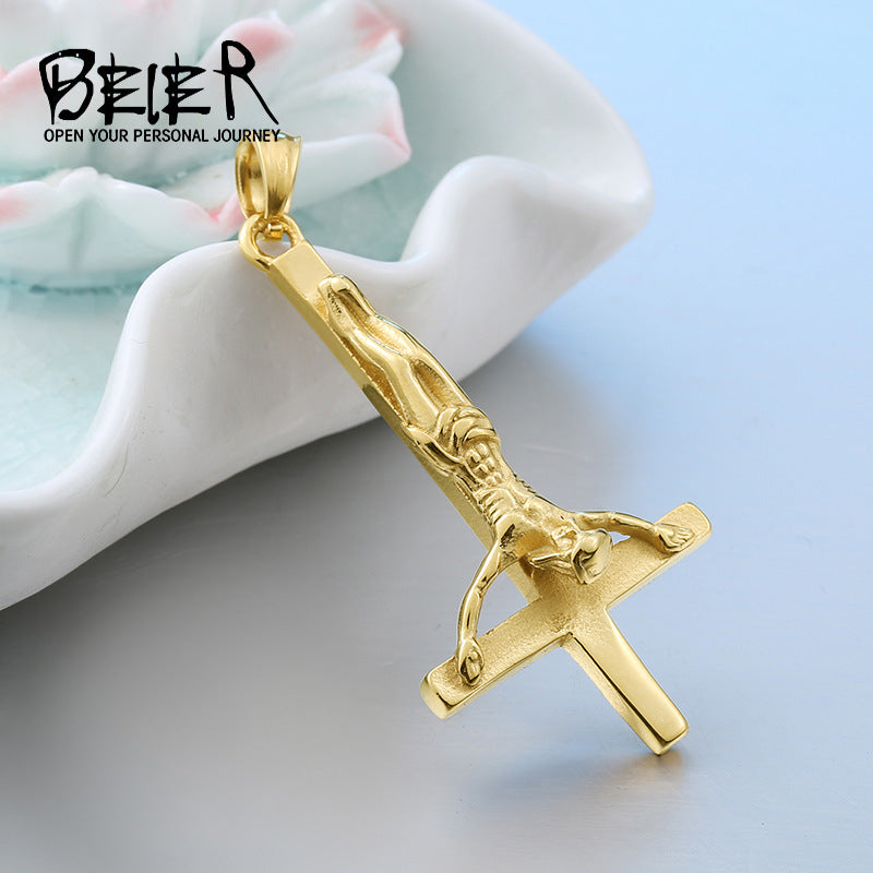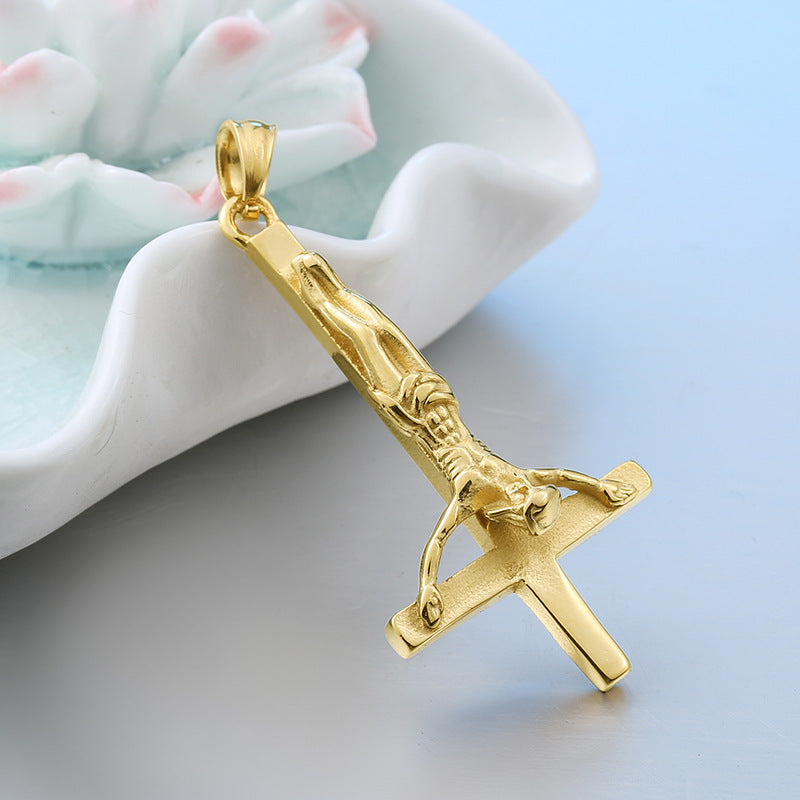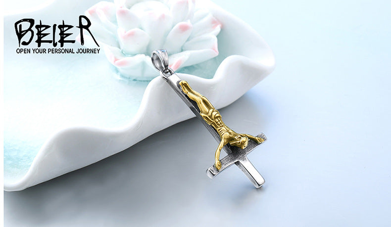 Titanium steel inverted cross pendant, men's personalized necklace pendant