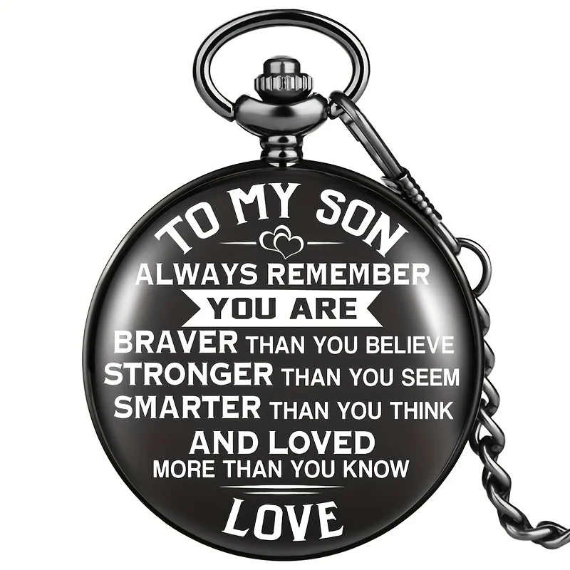 To MY SON Gifts Pocket Watch, Always remember "YOU ARE BRAVER" Quartz Waist Chain Pocket Watch Exquisite Clock Vintage Relogio